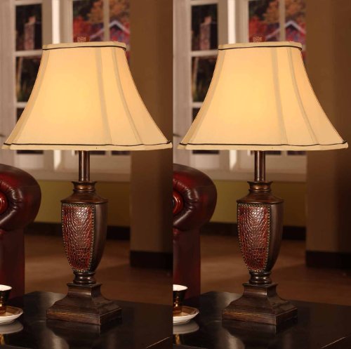 - Product Name: King's Brand L2601 Fabric Shade Table Lamps, Brushed Red Finish, Set of 2